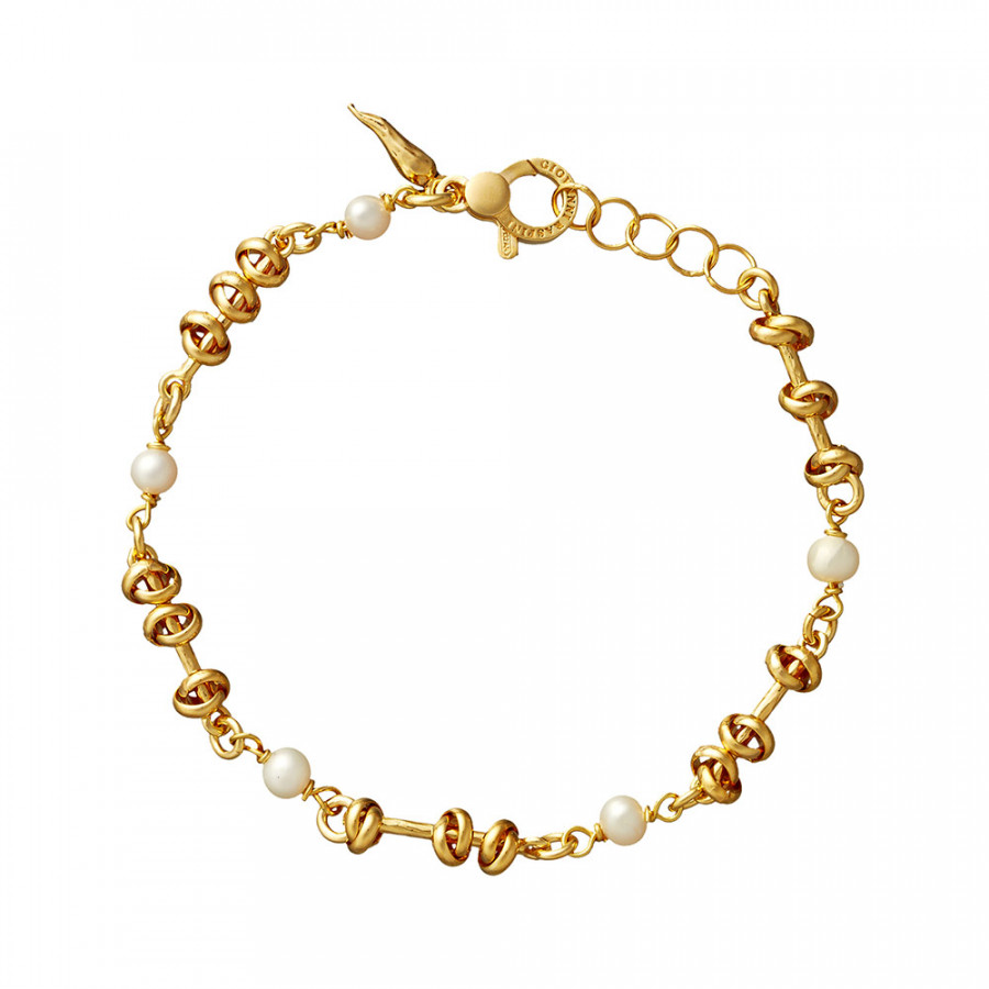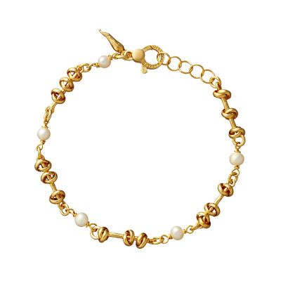 Un delicato bracciale in argento e perle naturali. Le sezioni rigide, realizzate con la tradizionale tecnica della fusione a cera persa ed arricchite da coppie di cimbelline intrecciate, si alternano alle luminose perle di acqua dolce. Leggero ed elegante, il gioiello diviene unico e prezioso grazie alla cura delle lavorazioni artigianali di Giovanni Raspini.