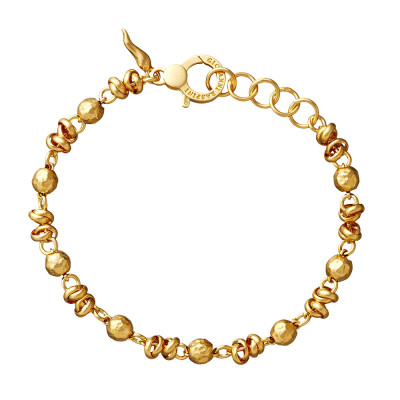 Un luminoso bracciale in argento per un indosso elegante e leggero. Sferette in argento martellato si alternano a coppie di maglie intrecciate su sezioni realizzate in fusione a cera persa. Unico e prezioso grazie alla cura delle lavorazioni artigianali di Giovanni Raspini.