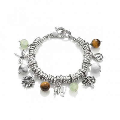 Bracciale in Argento 925 e prehnite, howlite, occhio di tigre.