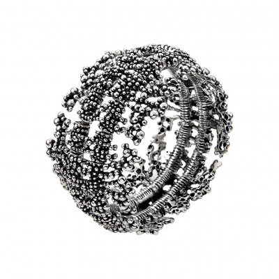 Creato a mano in Italia, pesa 108 gr ed è alto 3,8 cm. Due molle interne permettono l'indosso e l'adattabilità al polso.