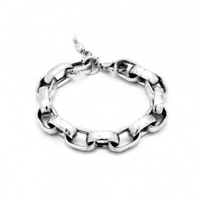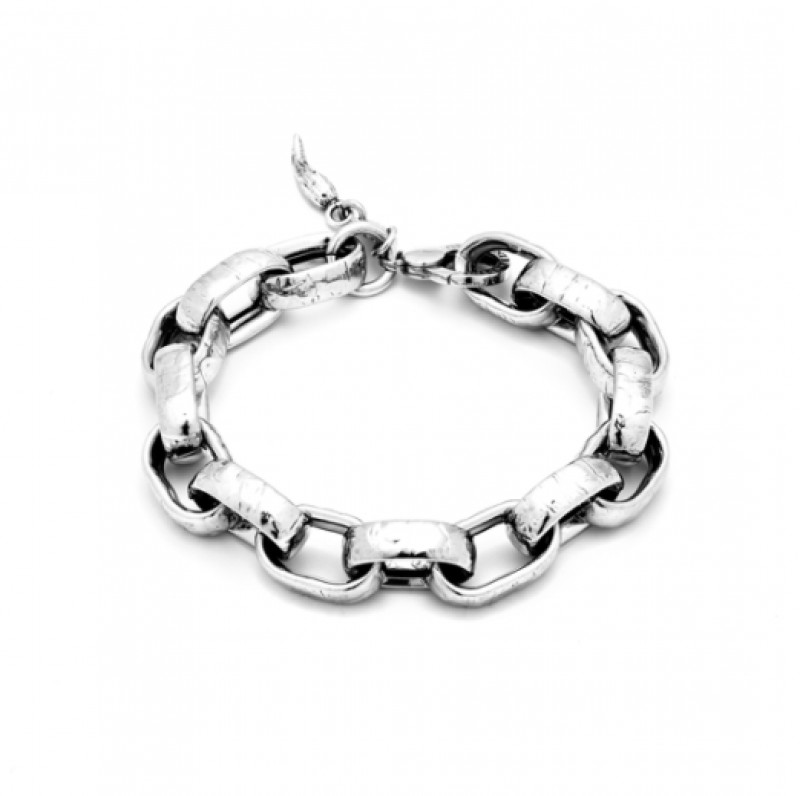 Collezione Catene - Una catena luminosa e dai volumi eleganti come solo l'argento martellato a mano consente. Il bracciale Soho Grande esprime tutta la raffinata semplicità del gioiello più antico, grazie all'utilizzo di maglie grandi, lucenti e di forte impatto materico.