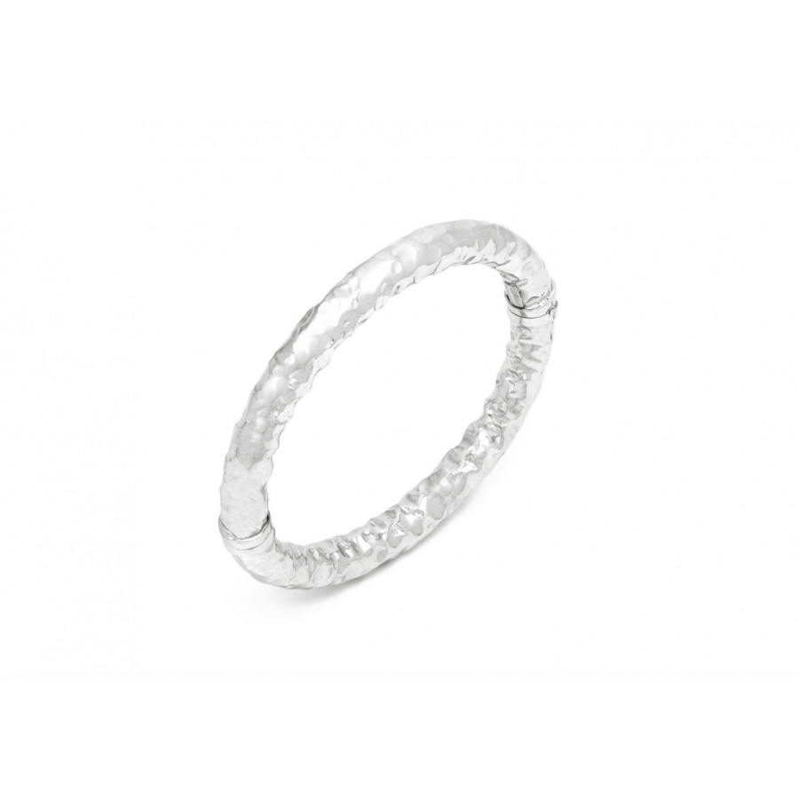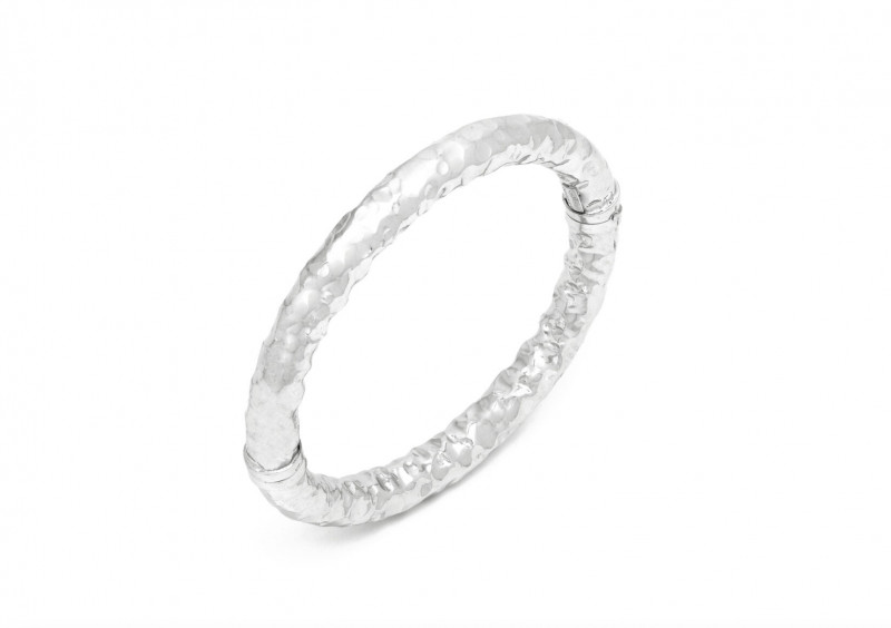 Il bracciale Stone Medio è realizzato da una lastra d'argento martellata a mano e successivamente piegata. Riflette la luce naturale in ogni direzione ed è perfetto da indossare in ogni occasione. Creato a mano in Italia, si presenta con apertura a molla.