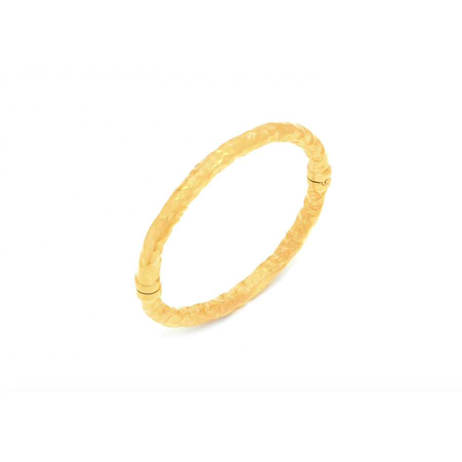Il bangle Stone Piccolo viene realizzato da una lastra d'argento martellata a mano e successivamente piegata a mano e bagnata nell'oro. Si tratta di un bracciale pieno di luce perfetto da indossare in ogni occasione. Creato a mano in Italia, si presenta con apertura con molla.