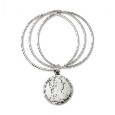 Bracciale della linea Monete firmato Giovanni Raspini appartenente alla collezione Perlage, Intrecci, Corone.