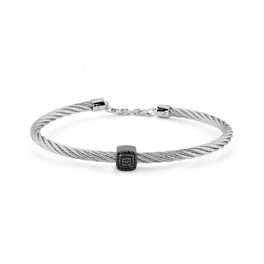 Bracciale Salvini in acciaio, con ciondolo quadrato in oro brunito 18 kt con diamanti neri della collezione Bagliori.