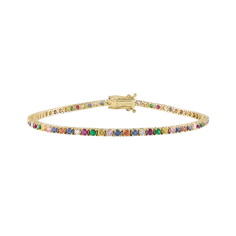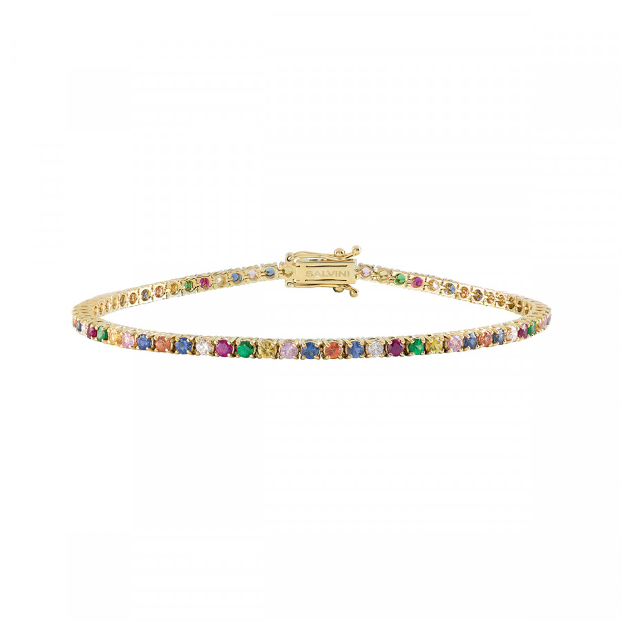 Bracciale in oro giallo con zaffiri, rubini, tsavorite e diamanti, della collezione Classico di Salvini.