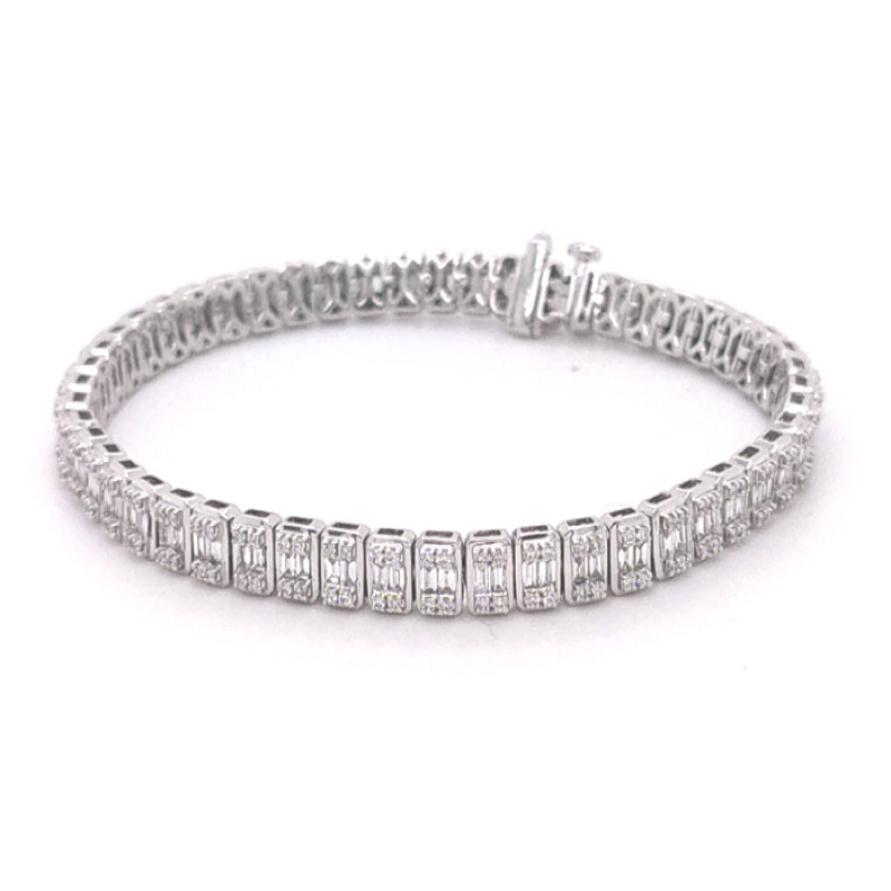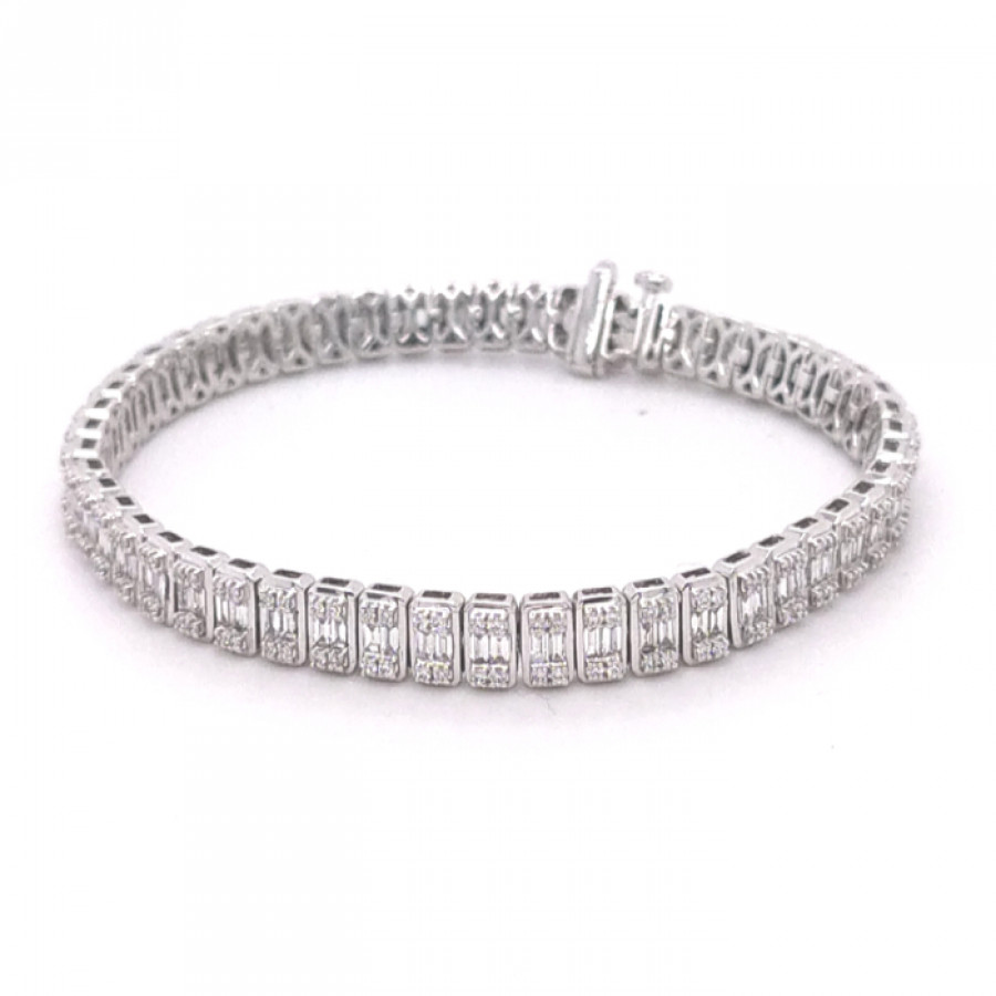 Bracciale in oro bianco e diamanti taglio rotondo/baguette 2.65 ct. GH, cm 17.50
