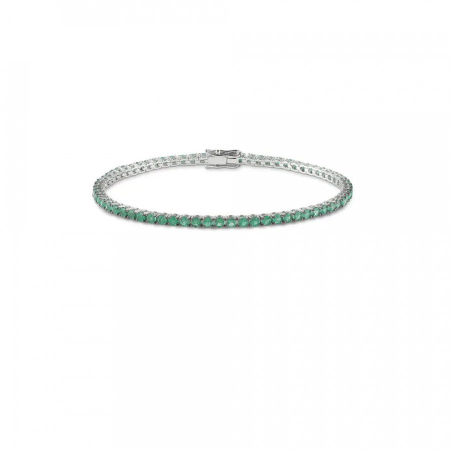 Bracciale Tennis in oro bianco, diamanti smeraldi