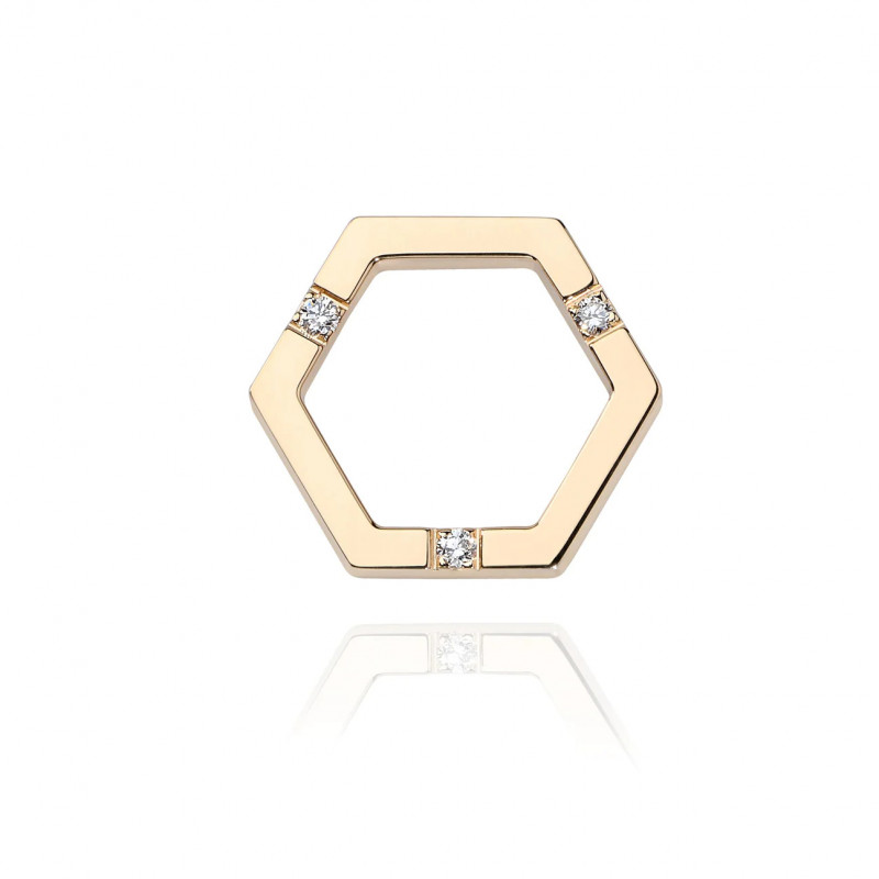 Ciondolo Burato Gioielli esagonale in oro giallo 18 kt e diamanti della collezione Amuleto.