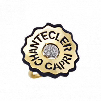 Anello Chantecler in oro giallo 18Kt, pavé di diamanti taglio brillante e resina nera opaca - Logo 25mm - appartenente alla collezione Logo.