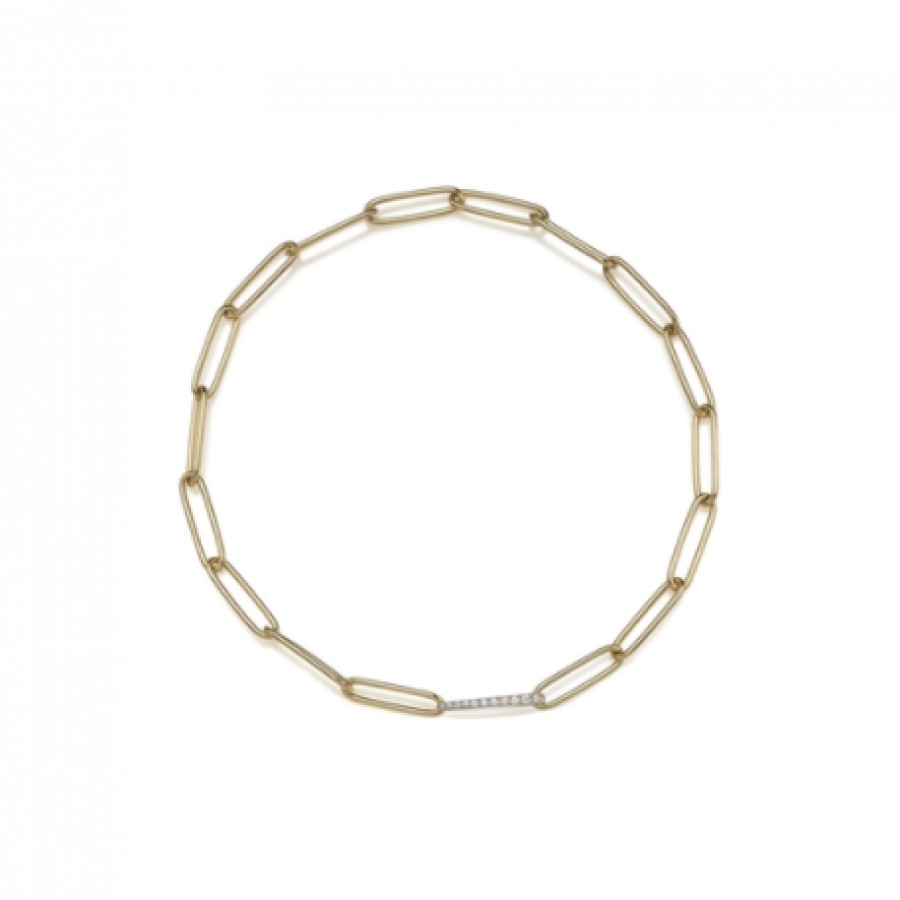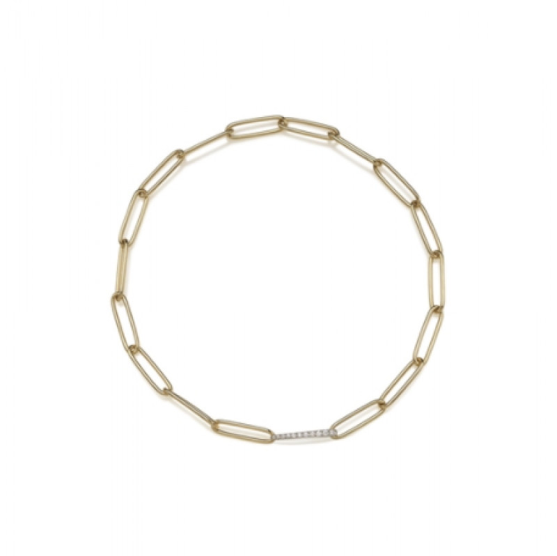 Bracciale maglie ovali in oro giallo e bianco 18Kt e diamanti bianchi, appartenente alla collezione Logo.