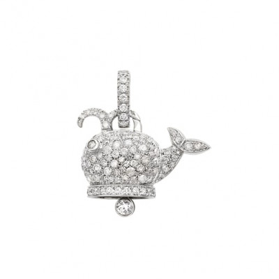 Ciondolo Chantecler Campanella media Balena in oro rosa 18Kt, diamanti, diamanti neri e titanio nero, collezione Campanelle.