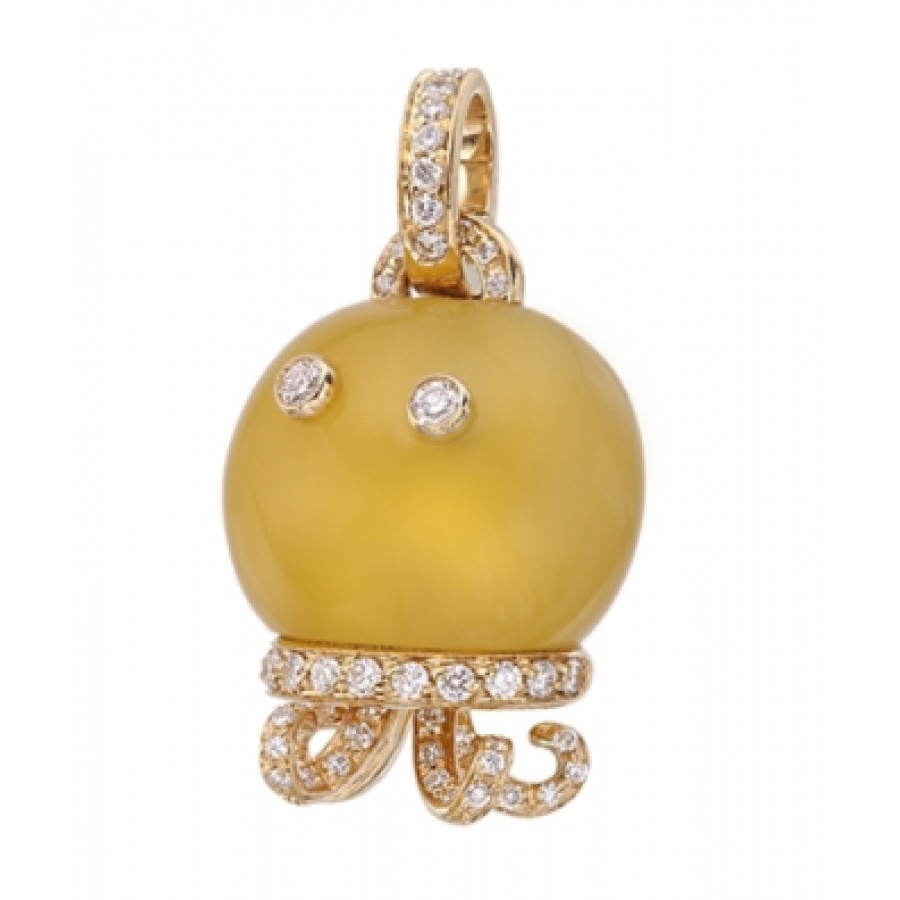 Ciondolo campanella Polpo in oro giallo con diamanti e calcedonio giallo, appartenente alla collezione Marinelle di Chantecler