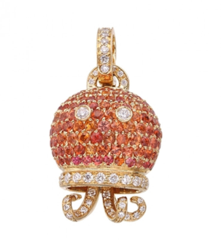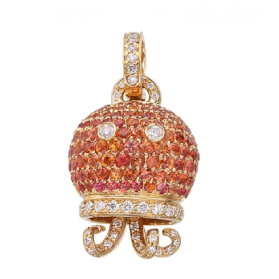 Ciondolo campanella Polpo in oro giallo con diamanti e zaffiri orange, appartenente alla collezione Marinelle di Chantecler