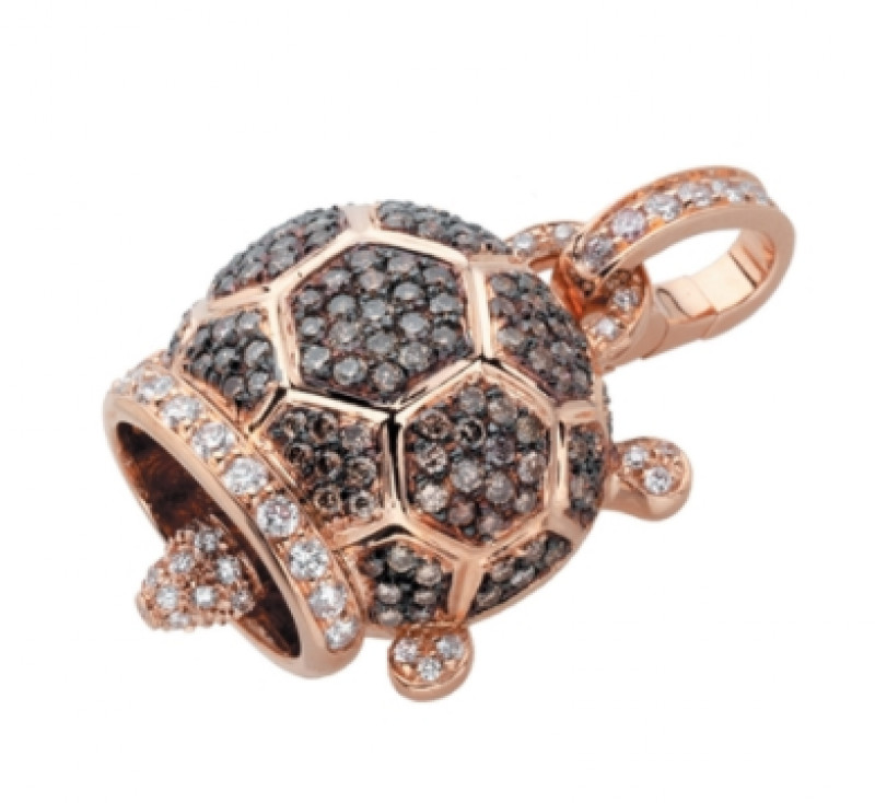 Ciondolo campanella Tartaruga in oro rosa con diamanti bianchi e brown, appartenente alla collezione Marinelle di Chantecler