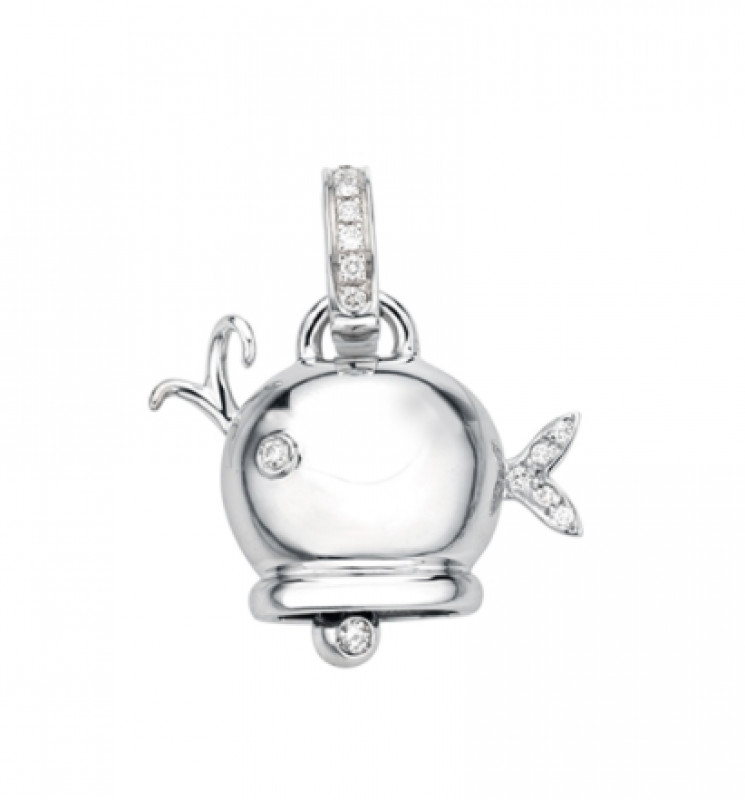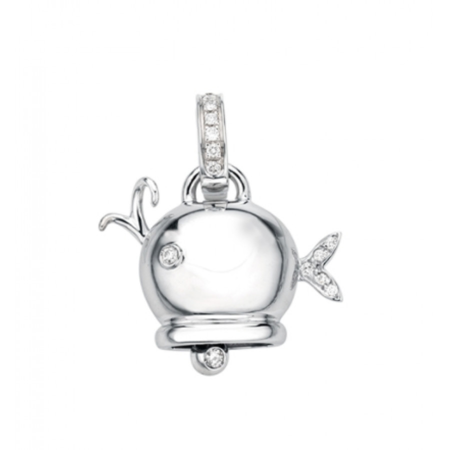 Ciondolo campanella Balena mini in oro bianco con diamanti, appartenente alla collezione Marinelle di Chantecler