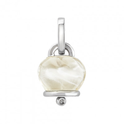 Ciondolo Chantecler Campanella medio in argento, resina sfaccettata a mano color cristallo di rocca e un diamante, appartenente alla collezione Et Voilà