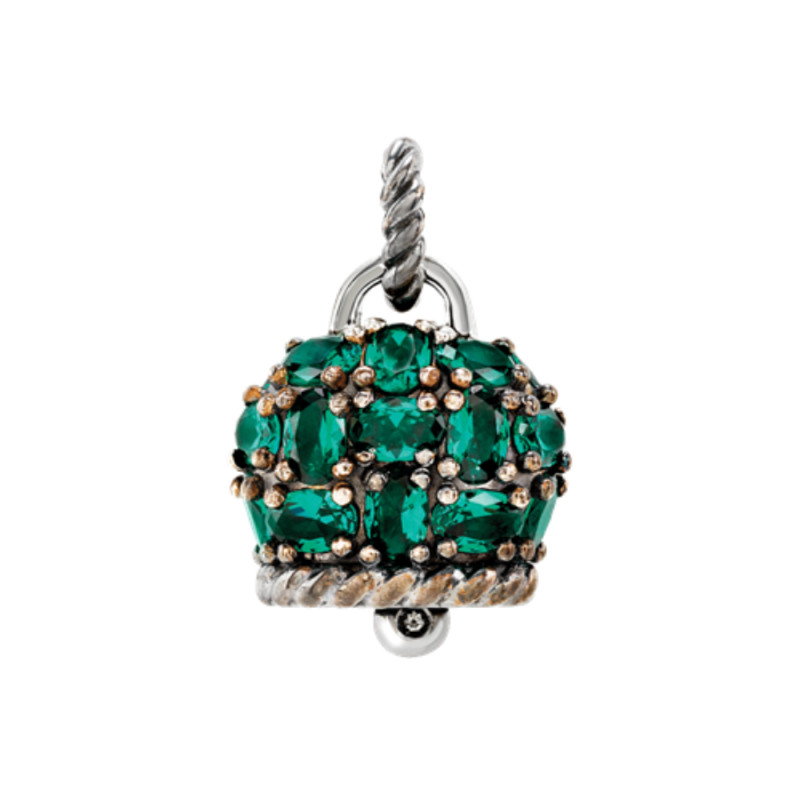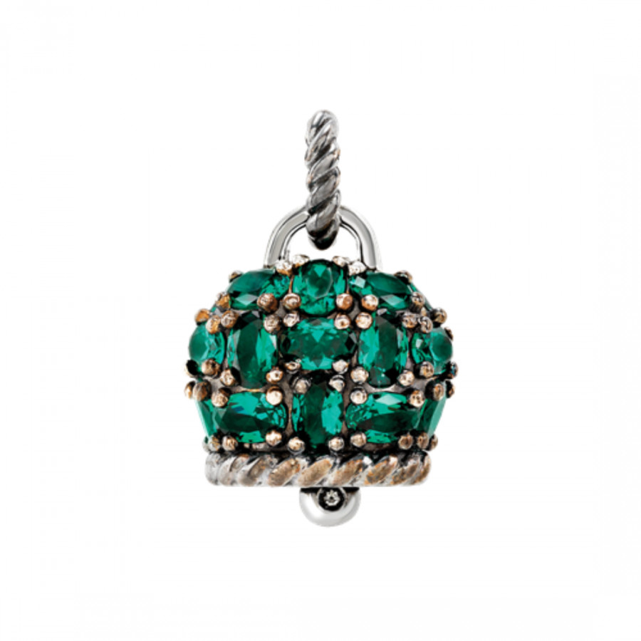 Ciondolo Chantecler grande con siamiti verde smeraldo taglio ovale incastonate a griffe su argento brunito e un diamante taglio brillante, appartenente alla collezione Et Voilà
