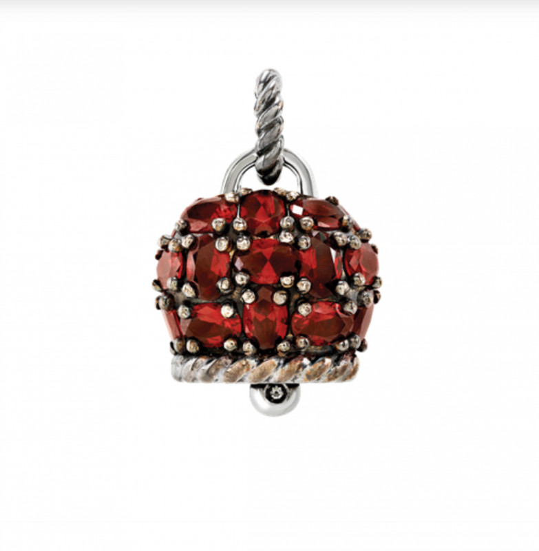 Ciondolo Chantecler grande con siamiti rosso rubino taglio ovale incastonate a griffe su argento brunito e un diamante taglio brillante, appartenente alla collezione Et Voilà