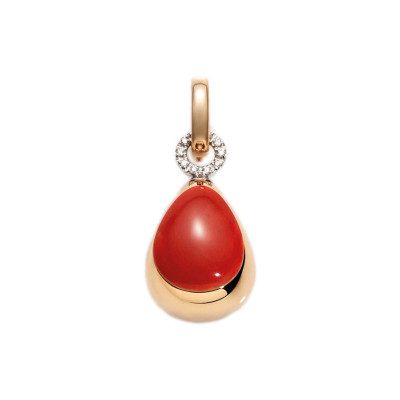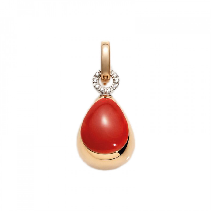 Ciondolo piccolo, goccia in corallo rosso e inserto centrale in pavè di diamanti bianchi, biglierina in diamanti, di Chantecler della collezione Capriful
