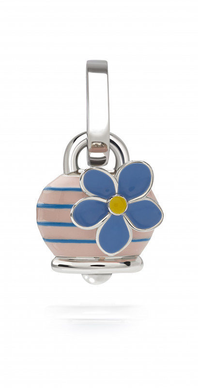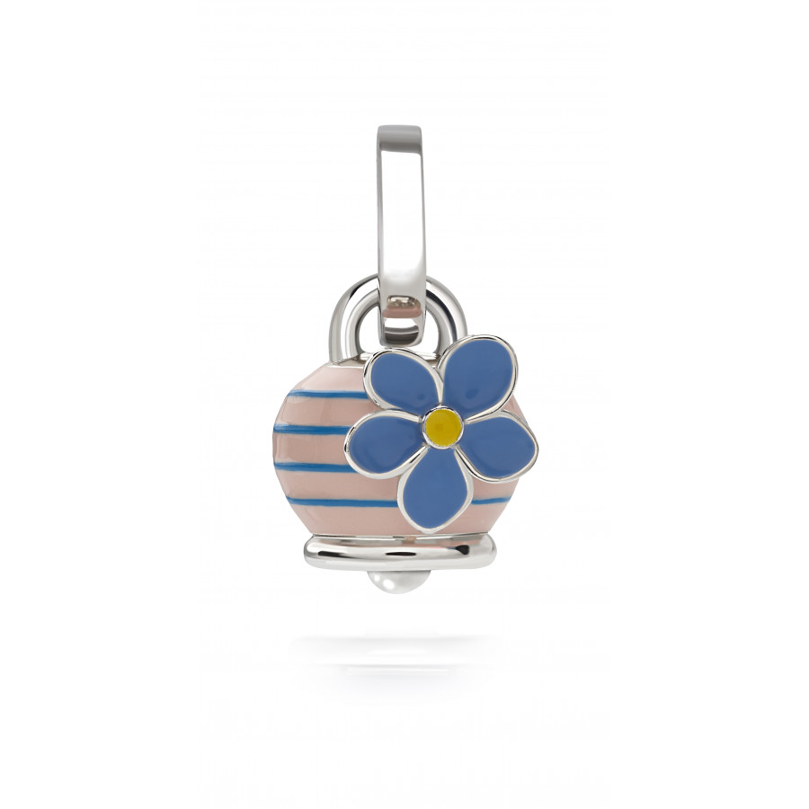 Ciondolo Campanella micro non ti scordar di me in argento, smalto rosa, turchese e giallo di Chantecler, collezione Et Voilà