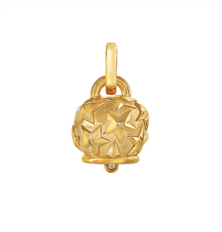 Ciondolo Chantecler Campanella medio con stelle sbalzate a mano, in argento dorato e diamanti taglio brillante, appartenente alla collezione Et Voilà.
