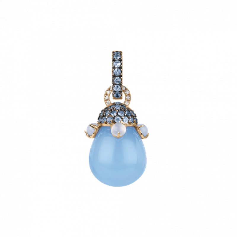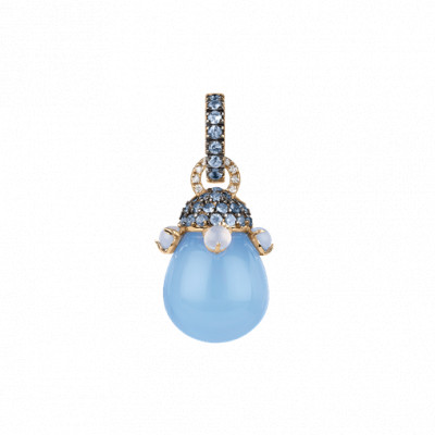 Ciondolo in oro giallo 18Kt, diamanti, zaffiri azzurri e poire in cristallo color glicine di Chantecler della collezione Joyful.