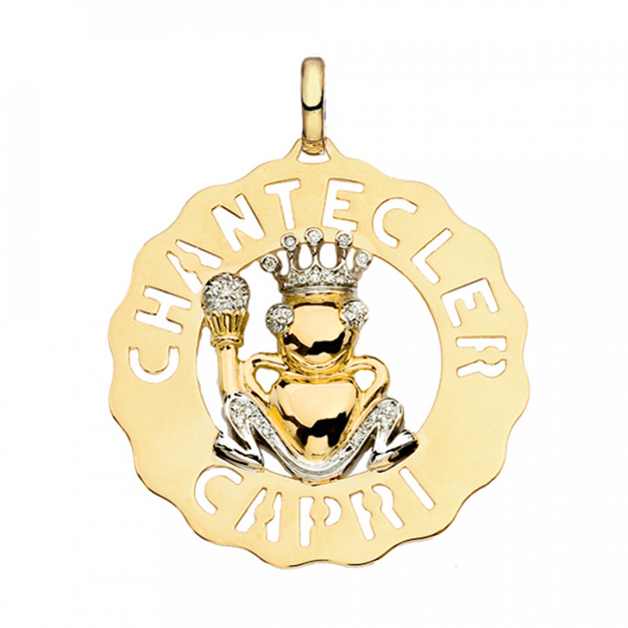 Ciondolo Chantecler singolo grande Principe Ranocchio oro giallo, bianco e diamanti, appartenente alla collezione Logo.