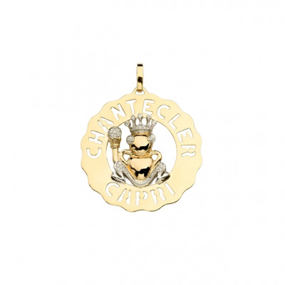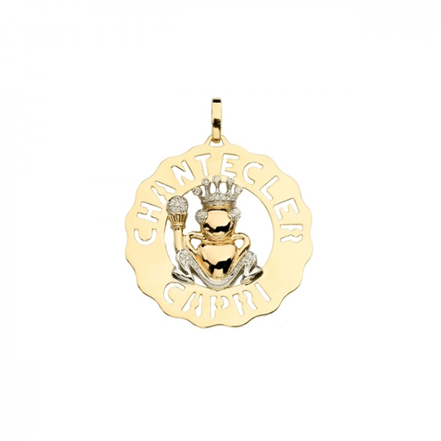 Ciondolo Chantecler singolo medio Principe Ranocchio oro giallo, bianco e diamanti, appartenente alla collezione Logo.