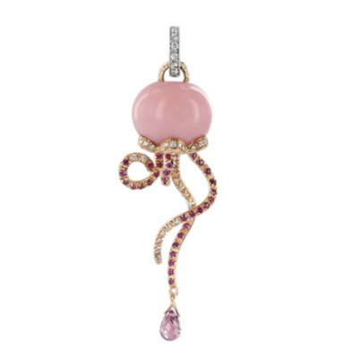 Ciondolo Chantecler Medusa in oro rosa e bianco diamanti bianchi, diamanti, zaffiri rosa e opale rosa, appartenente alla collezione Marinelle.