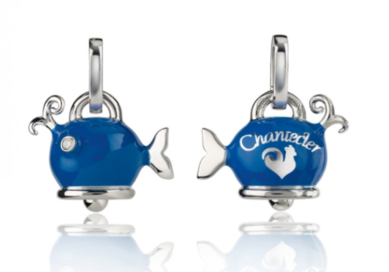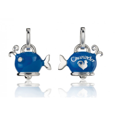 Ciondolo balena piccolo in argento, smalto blu e diamante bianco, appartenente alla collezione Et Voilà di Chantecler.