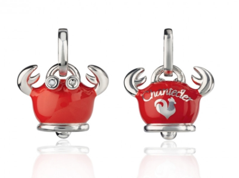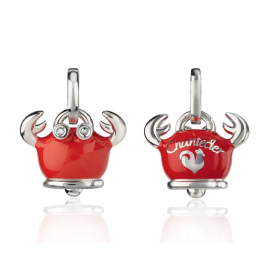 Ciondolo granchio piccolo in argento, smalto rosso e diamanti neri, appartenente alla collezione Et Voilà di Chantecler.