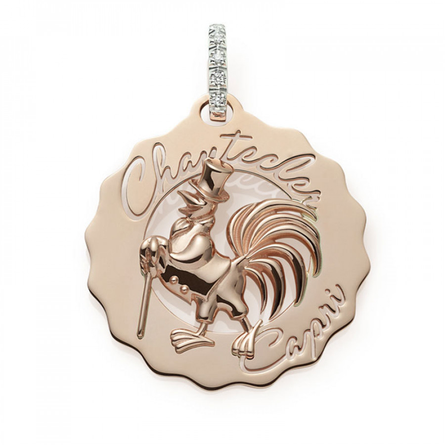 Ciondolo Chantecler piccolo Gallo Dandy in oro rosa con diamanti, appartenente alla collezione Logo.