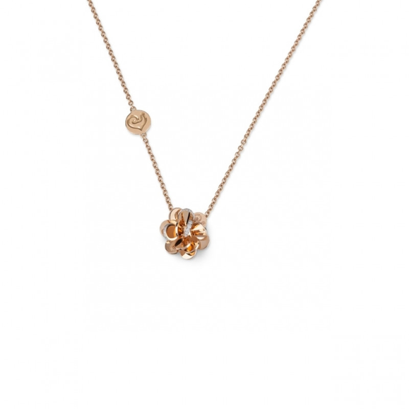 Qui troviamo il ciondolo fiore appartenente alla collezione Chantecler Paillettes in oro rosa 18kt e diamanti. Formato piccolo.