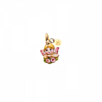 Il Ciondolo con Angioletto Rosa Gabriella Rivalta aggiunge tenerezza e dolcezza alla collezione Mini Preziosi. In questa versione l’angioletto è comodamente appoggiato su un bouquet di fiori.