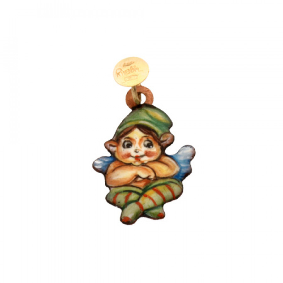 Qui il ciondolo interamente artigianale con Folletto. Il ciondolo è minuziosamente dipinto a mano con smalti a gran fuoco su sagoma in rame puro con biglierina e marchietto in oro 18 carati.