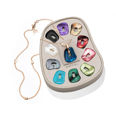 Box Ciondolo Mattioli medi e catenina in oro rosa e 11 trapezi colorati intercambiabili della collezione Puzzle