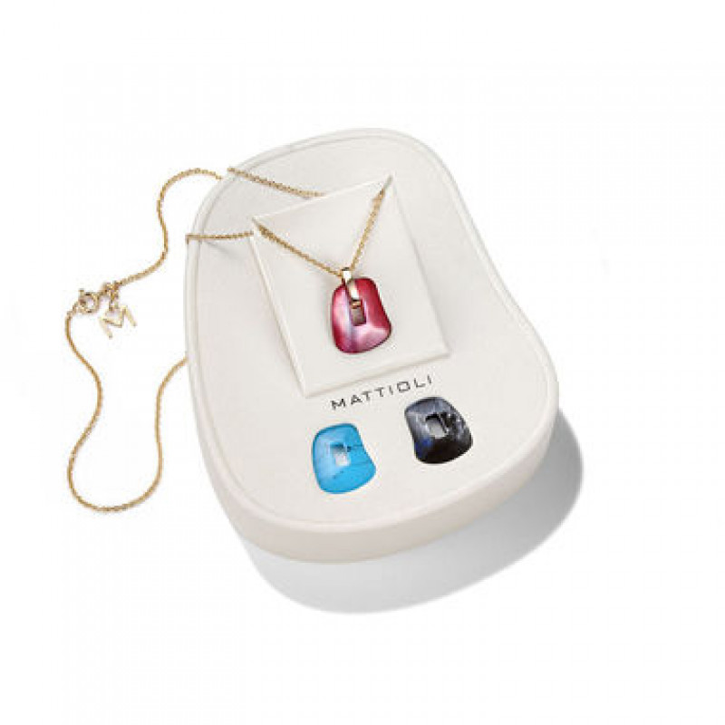 Small pendant box and chain in pink gold and three interchangeable colored trapezoids, by Mattioli from Puzzle collection