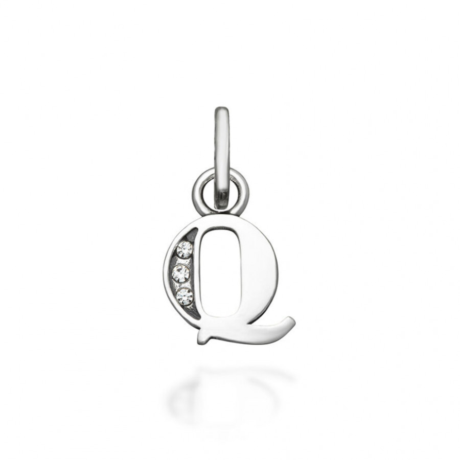 Questo mini charm è un piccolo capolavoro in argento, reso ancora più luminoso dai micro-zirconi trasparenti montati con effetto pavé. Riproduce la lettera Q ed è perfetto per creare il tuo gioiello personalizzato. Fatto a mano in azienda.