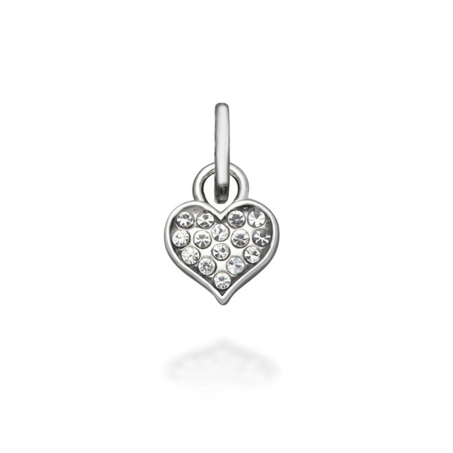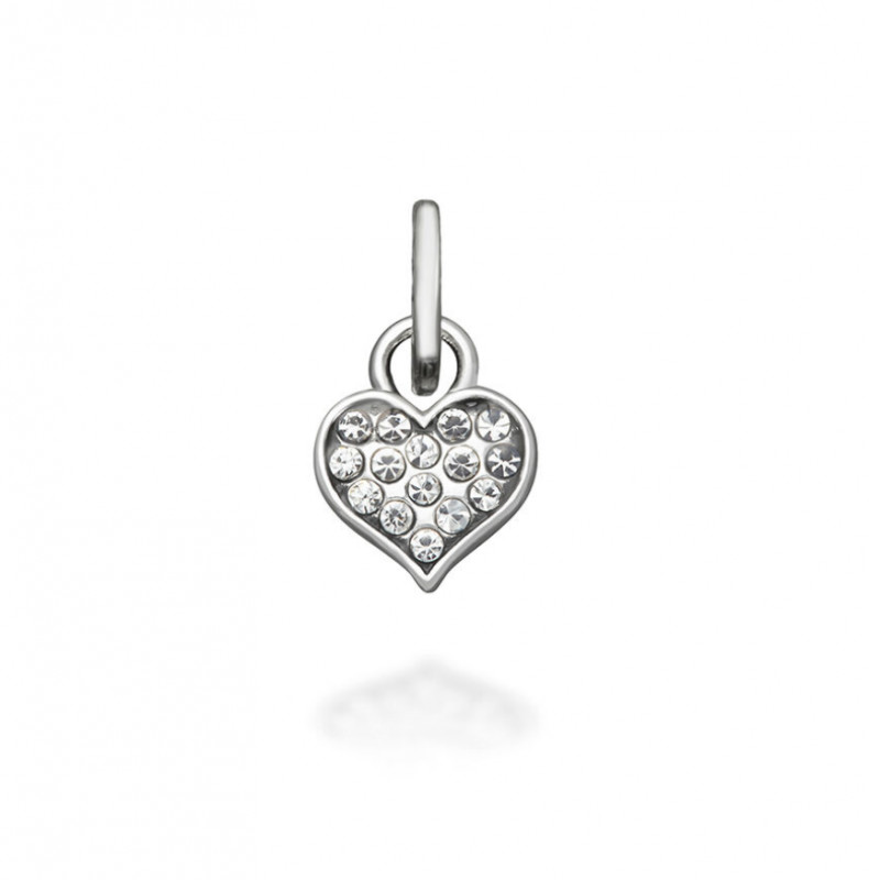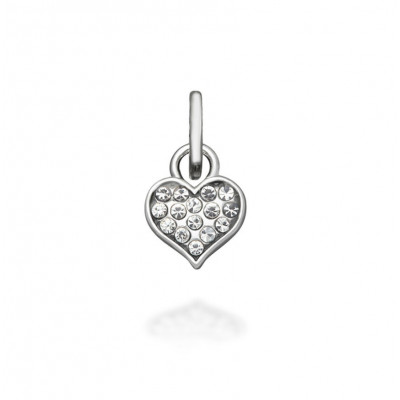 Mini charm in argento a forma di cuore, interamente realizzato a mano in azienda. La sua brillantezza straordinaria è esaltata dai micro-zirconi trasparenti incastonati a pavé, per un tocco di luce sorprendente e raffinato.