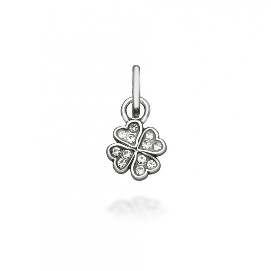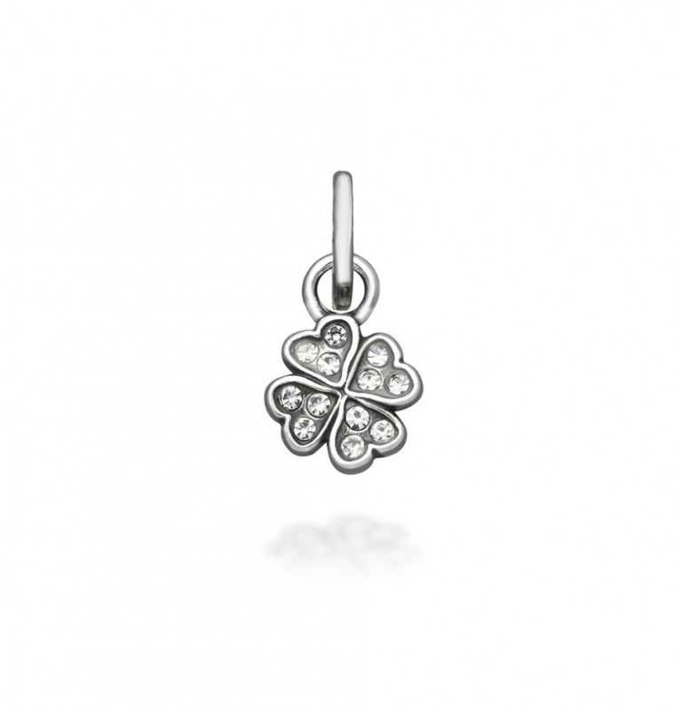 Porta con te la fortuna con questo mini charm in argento a forma di quadrifoglio, realizzato a mano in azienda. La brillantezza dei micro-zirconi trasparenti incastonati a pavé aggiunge una luce sorprendente a questo piccolo gioiello.