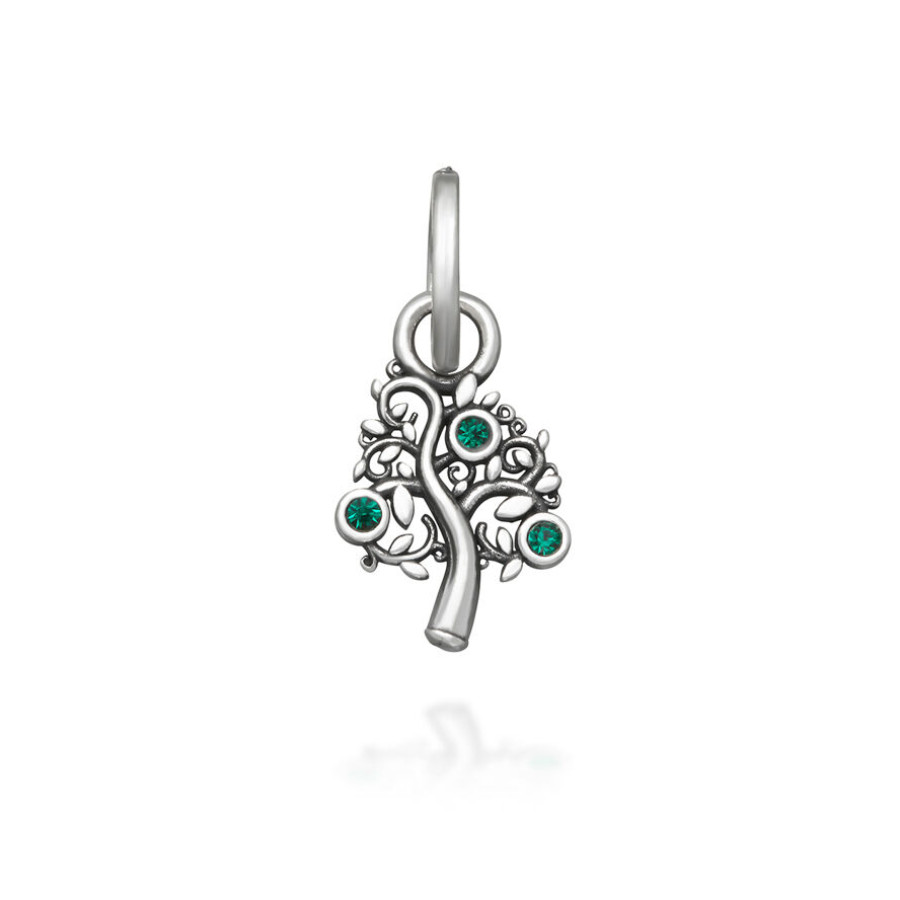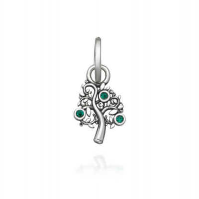 Una pianta che protegge. Mini charm in argento a forma di albero della vita realizzato completamente a mano in azienda. Con una luminosità sorprendente, amplificata ancor più dai micro-zirconi verdi montati con effetto pavé.