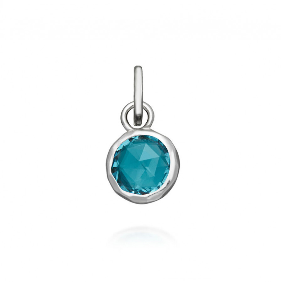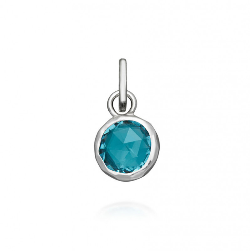 Eleganza in miniatura. Charm dotato di un brillante cristallo azzurro sfaccettato, racchiuso in una delicata fascetta in argento. Ogni pezzo è realizzato a mano in azienda, offrendo un tocco di perfezione e unicità.