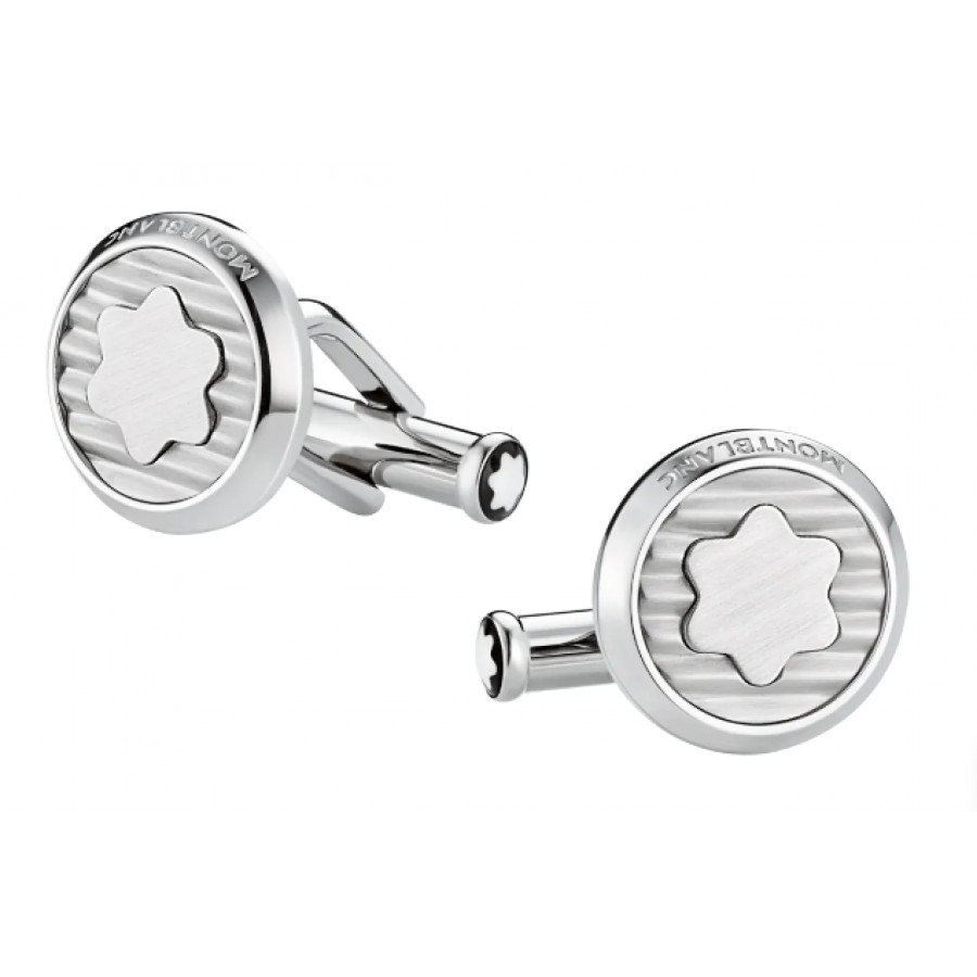 Questi gemelli celebrano uno stile sobrio ed elegante. I gemelli rotondi in acciaio pregiato con cima innevata e marchio Montblanc inciso creano un gioiello dalla forte identità Montblanc.