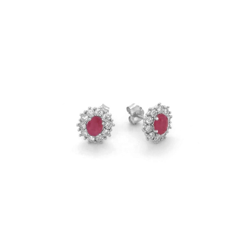 Orecchini in Oro Bianco 18kt, rubini 0,3 ct e diamanti 0,7 ct GH