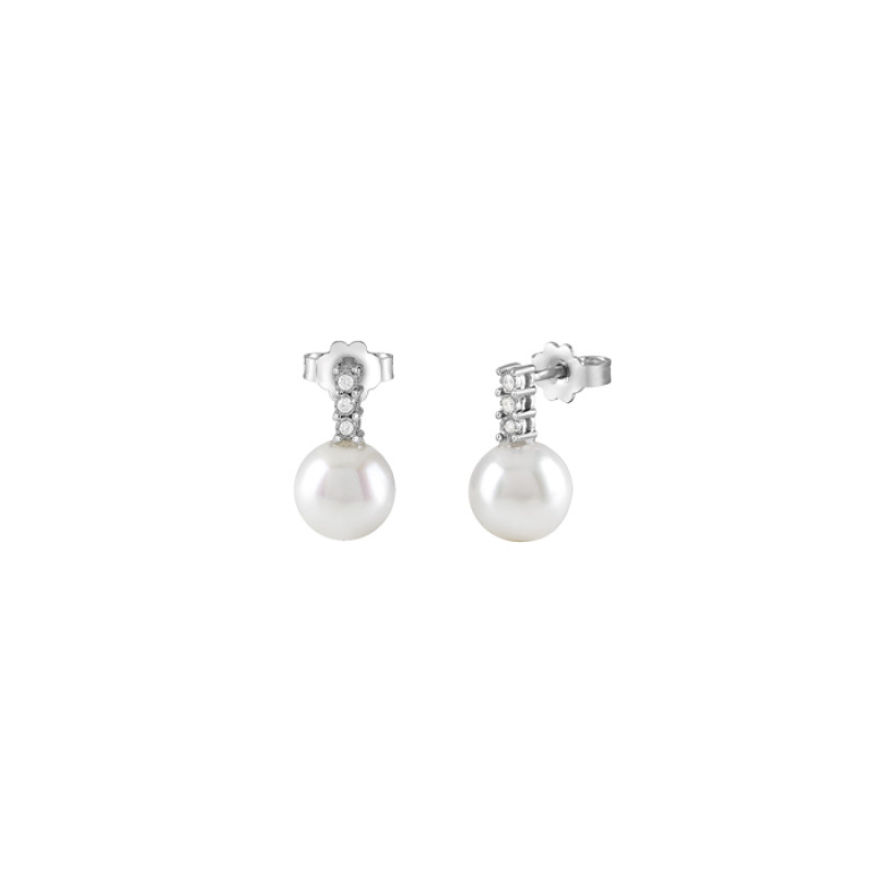 Orecchini Bliss Rugiada in oro bianco 18 kt diamanti 0,03 ct e perle