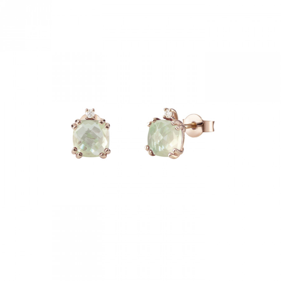 Orecchini Bliss Joy Candy in oro rosa 9 kt con diamante 0,02 ct e ametista verde 0,4 ct