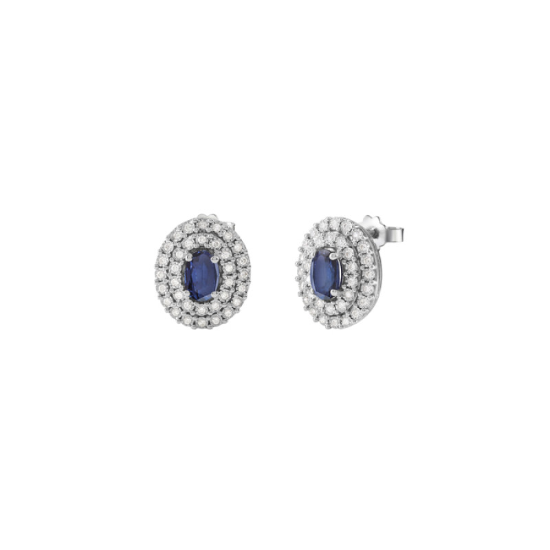 Orecchini Bliss Regal in oro bianco 18 kt diamanti 0,27 ct e zaffiri 1,2 ct taglio ovale