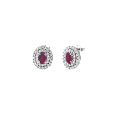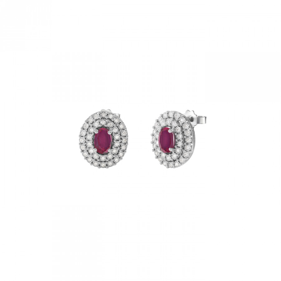 Orecchini Bliss Regal in oro bianco 18 kt diamanti 0,27 ct e rubini 1,2 ct taglio ovale