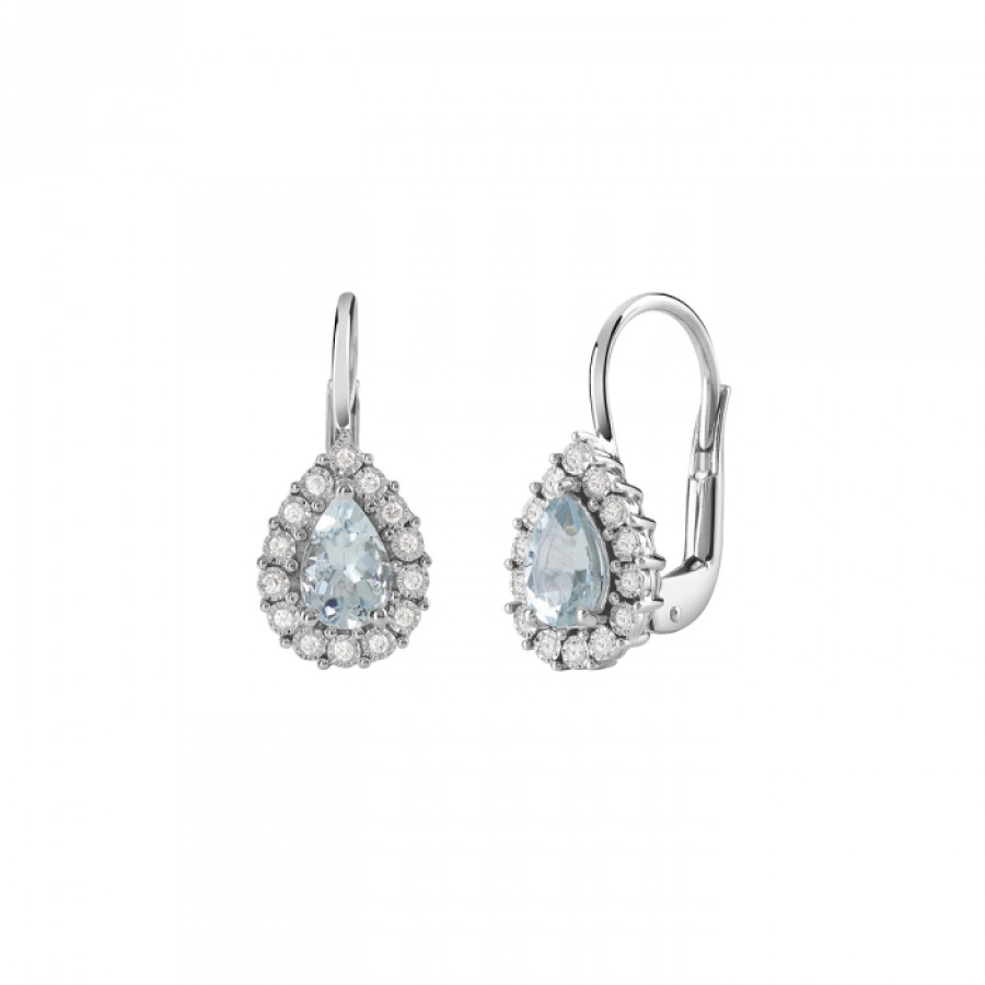 Orecchini Bliss Stephanie in oro bianco 18 kt, diamanti 0,11 ct e acquamarina 0,22 ct taglio a goccia